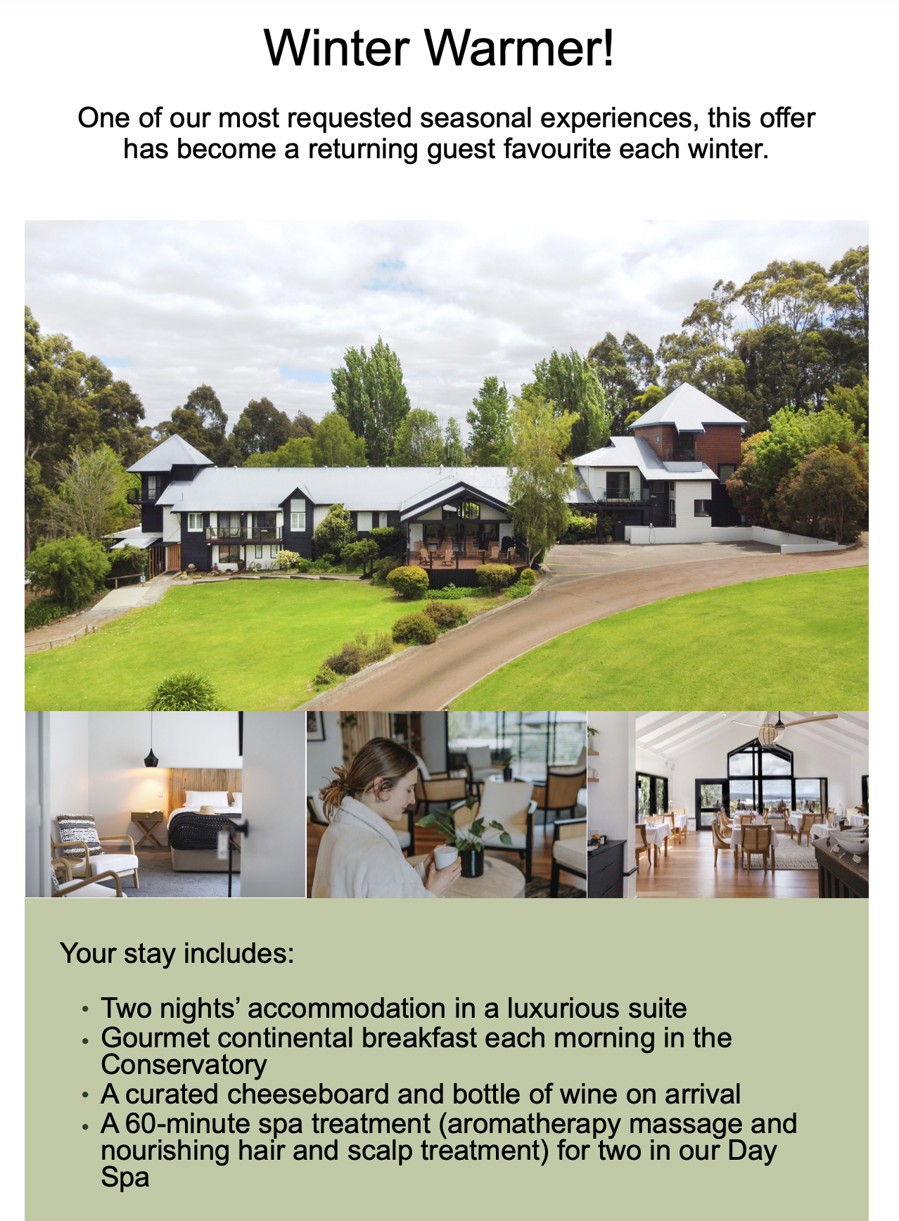 For a uniquely special Chimes Experience try one of our packages. Includes accommodation and an indulgent selection of day spa treatments.