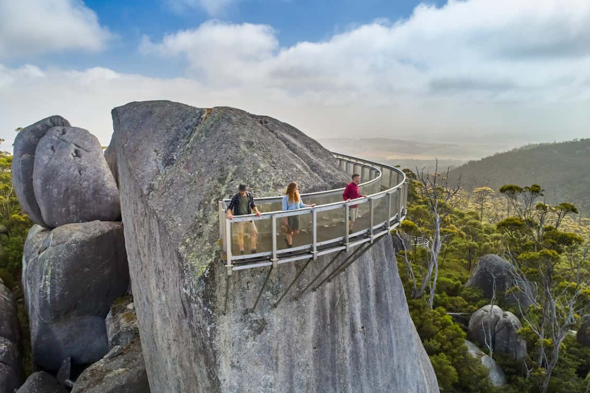 This 4.7 km (return) trail winds through Jarrah, Marri, and Karri forest, leading you past the fascinating Balancing Rock to the base of Castle Rock. For the more adventurous, a steep climb and scramble over rocks await, culminating in the awe-inspiring Granite Skywalk. This steel structure offers panoramic views of the surrounding countryside, stretching from Albany on the south coast to the Stirling Range in the north.